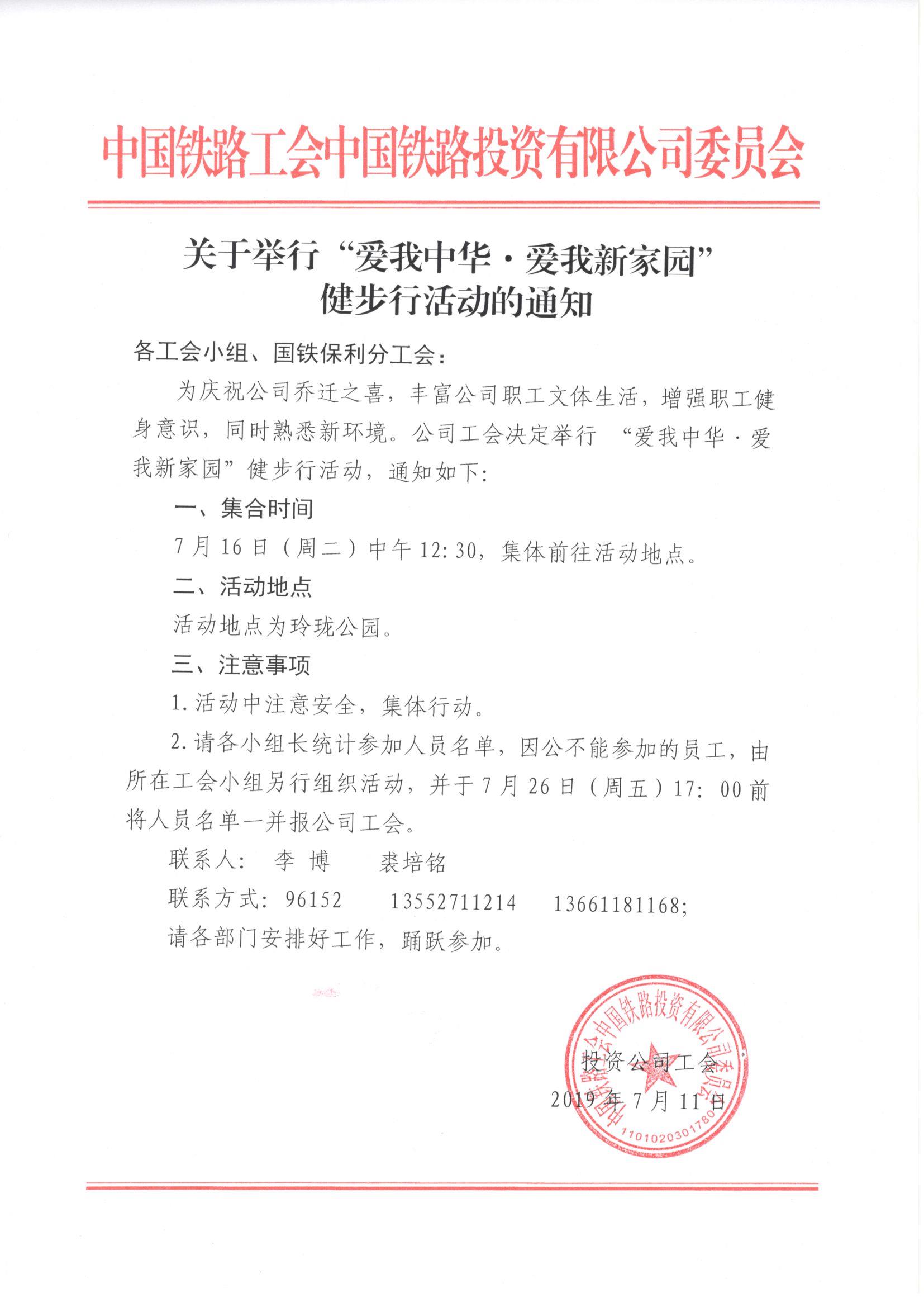 关于举办“爱我中华·爱我新家园”健步行(含保利)