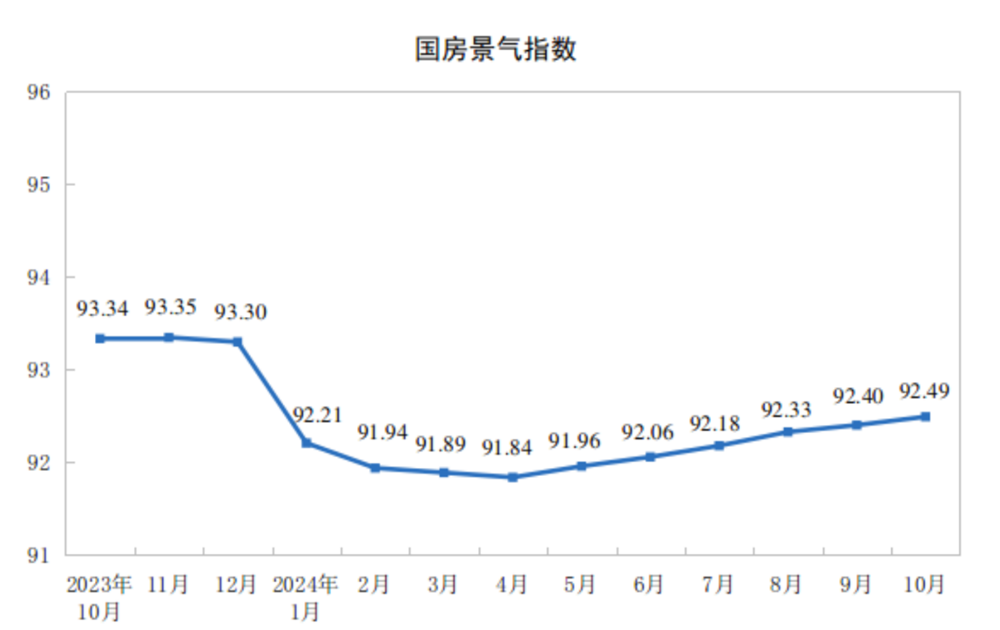 10月份,房地产开发景气指数(简称“国房景气指数”)为92.49。