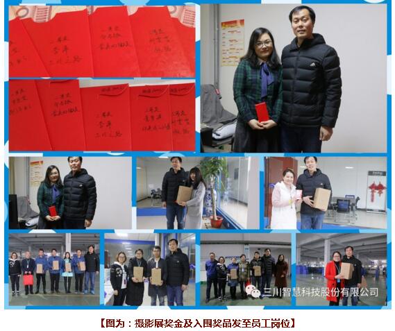 发布时间:2017-12-30由三川集团工会举办的第五届映像·三川摄影”活动已圆满结束,12月30日上午三川智慧工会主席员刚强、三川智慧行政部长陈芳至三川智慧各部门,不仅仅将摄影展的奖金及奖品亲自送到获奖者手中,同时也代表米兰网页版给全体员工派发新年甜蜜和喜庆。